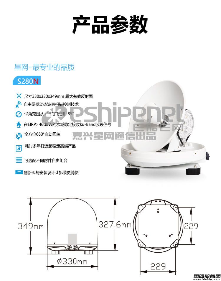 嘉興星網通信船用智能衛星電視天線S280N