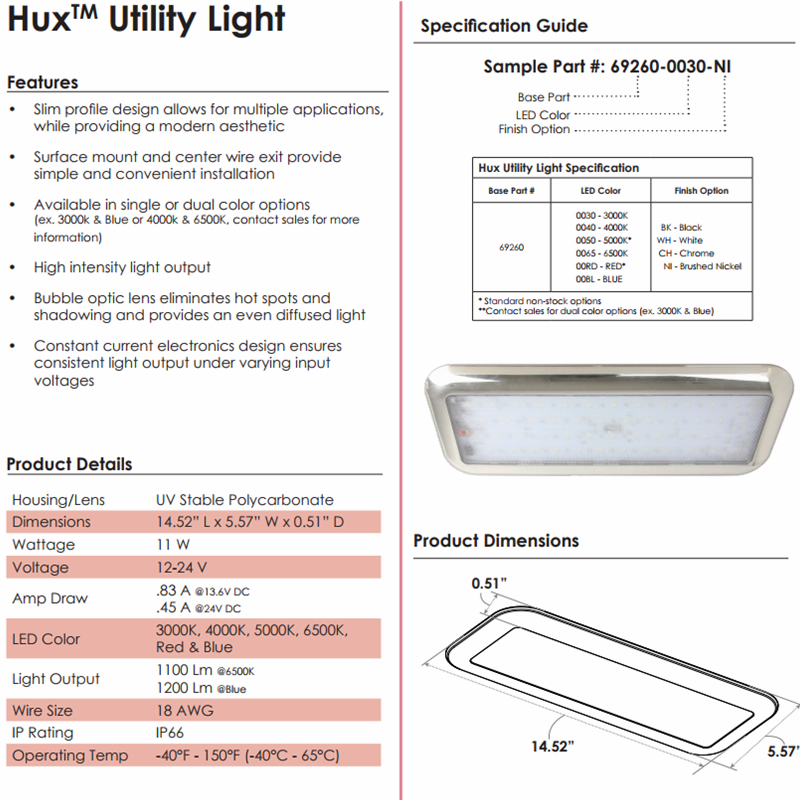 | 69260-0050-WH | 白色外殼 | 表面安裝(超薄13mm) | 白光/暖白 | 1200LM | 11W | 0.43-0.8A | 12-24V | ||