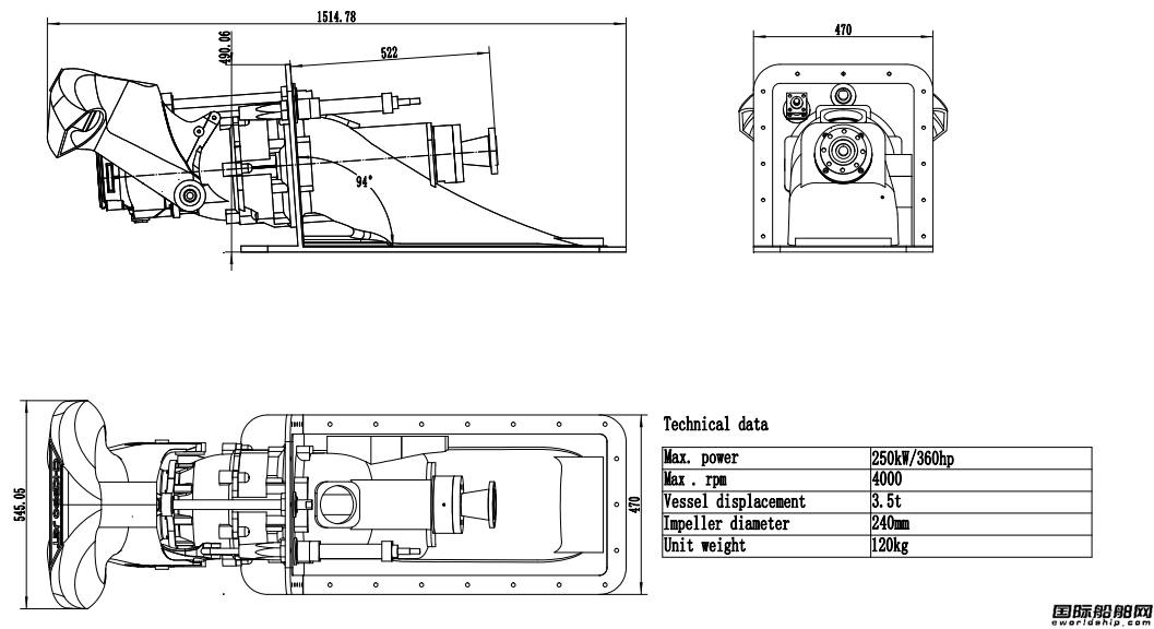 CAV-240-2型噴水推進(jìn)器的主要技術(shù)參數(shù)(Main Data):