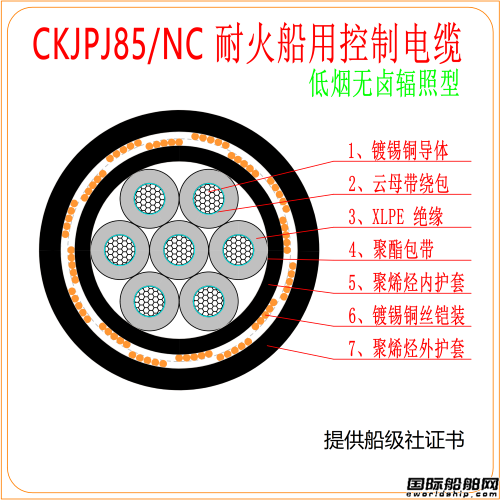 低煙無鹵耐火船用控制電纜主要用于船舶、海上石油平臺、鉆井平臺的儀表通信傳輸系統,適應高溫、高濕、鹽霧、振動等嚴苛環境,同時滿足防火要求。