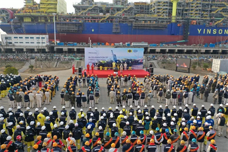 2月22日,啟東中遠海運海工承建的“獵鷹”輪FPSO改裝項目舉行700萬工時無損工傷害事件獎勵活動,船東Yinson公司項目經理Mr Scott、項目交付經理Mr Sareen、項目現場經理龔萬里、Mr Loredano,啟東中遠海運海工副總經理邵小斌等領導出席,項目組成員共計500余人參加活動。...