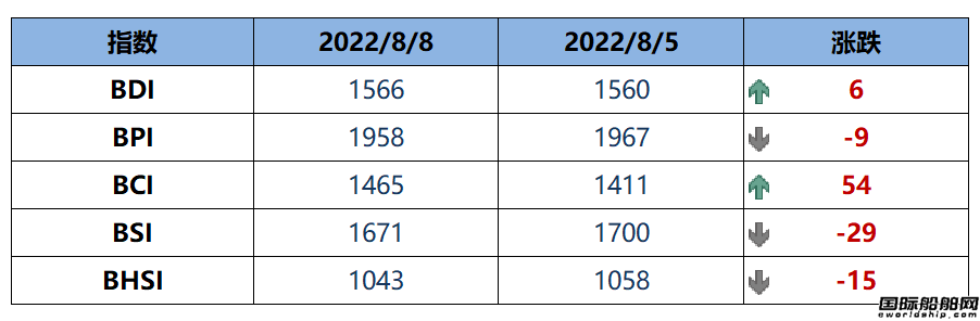 BDI指數周一上升6點,或環比上升0 38%至1566點...2022-08-09 14:49:00