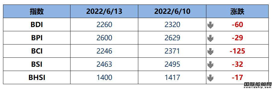 6月1日,波羅的海干散裝綜合指數(BDI)報2633點,周跌1 8%。好望角型運費指數(BCI)報2927點,周漲3 9%,創近1周高點。...