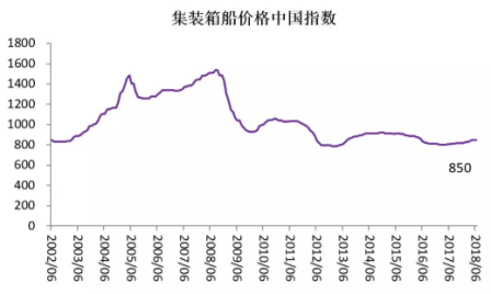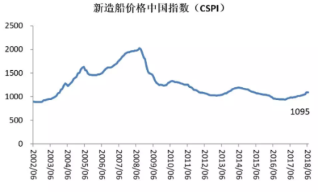 2018年6月,新造船價格中國指數升至1095點,環比上漲4點,較去年年末上漲79點。其中,散貨船、集裝箱船、油船和液化氣船的新造船價格中國指數分別為1329點、850點、1177點和1353點,環比分別上漲6點、1點、1點和2點。