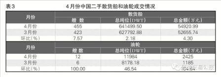4月,二手船價格基本平穩,市場成交活躍,總成交艘數和成交金額均穩中有增(見表1)。