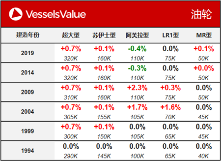 本周中等船齡阿芙拉型油輪價值走勢略微堅挺。
