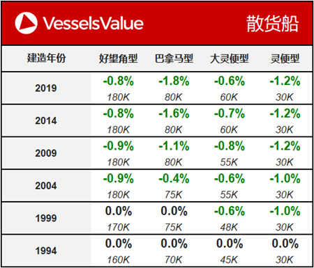 每周全球主流船型二手船交易信息,及VesselsValue(簡稱VV)售前估值。...