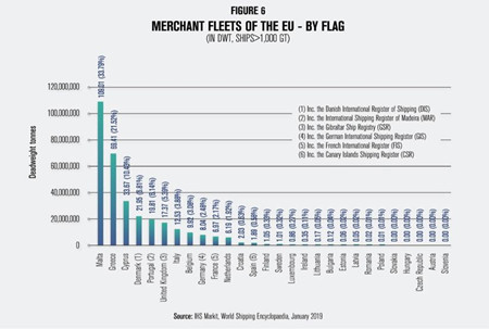 下圖顯示了歐盟商船船隊船旗情況