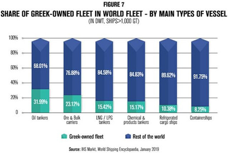 希臘船籍船舶共有720艘(每艘在1000總噸以上),共計3961萬總噸。按載重噸計算,懸掛希臘船旗的船隊在全球排名第8,在歐盟排名第2。此外,希臘船東控制著全球31.99%的原油油輪船隊,23.12%的干散貨運輸船隊以及15.17%的化學品和成品油輪船隊。