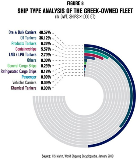 下圖顯示了希臘船隊中各種船型的占比