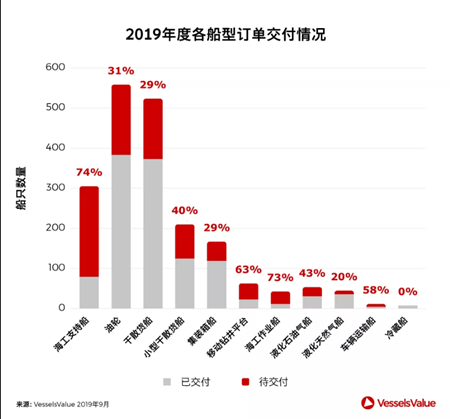 2019年全球航運市場應(yīng)交付的訂單總數(shù)中已有60%實際交付,超過了2018年同期的交付率(50%)。