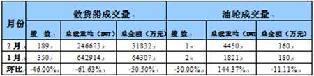 1-2月份國(guó)內(nèi)散貨船和油輪成交量