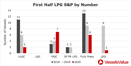 由于1月初,StealthGas公司以整體交易的形式從Hartmann公司購入了3艘中型氣體船(MGC),2020年上半年該領域的總交易額僅下降約35%。