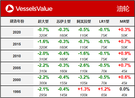 本周超大型和阿芙拉型油輪價值走勢疲軟。