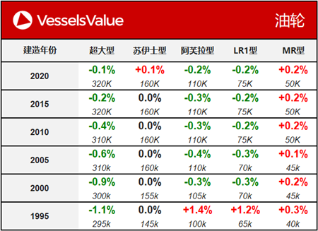 本周油輪價值走勢持續保持平穩。