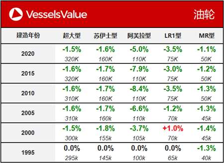 本周阿芙拉和LR1型油輪價值走勢疲軟。