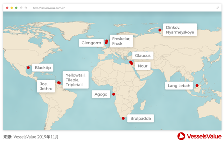 VesselsValue的 “地圖”模塊,最近在現有的全球海上設施分布圖(Offshore layers)的基礎上增添了 “可供開采的油氣田”這一新內容。