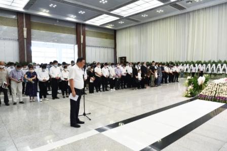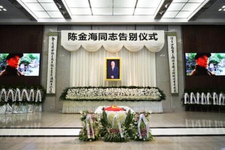 上午,龍華殯儀館大廳內(nèi)莊嚴肅穆,陳金海同志的遺體安臥在鮮花叢中,身上覆蓋著中國共產(chǎn)黨黨旗。10時許,中國船舶集團有限公司黨組成員、副總經(jīng)理孫偉,市委軍民融合辦吳磊,市委老干部局范偉傳,原中船集團副總經(jīng)理南大慶,原中船重工副總經(jīng)理陳民俊,上海市經(jīng)濟和信息化工作黨委書記陸曉春,原總裝備部軍兵種裝備部部長姜來根,南海艦隊原副司令員么志樓,上海市高級人民法院原院長滕一龍,中國衛(wèi)星海上測控部副主任周錦標,中國船舶集團旗下江南造船黨委書記、董事長林鷗,江南造船總經(jīng)理黃文飛等領導,以及陳金海同志的親友、同事等數(shù)百人前來為他送行。