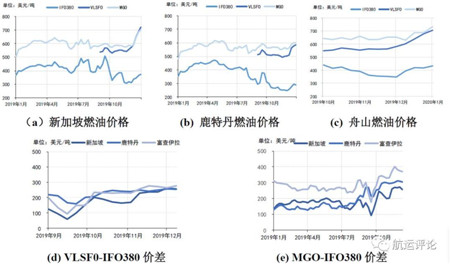 首先,限硫令直接影響了合規燃油價格。今年年初,由于短期內低硫油供應存在較大缺口,高、低硫油價差基本維持在200美元/噸以上。