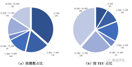 在已安裝脫硫塔船型中,1.25萬TEU以上集裝箱船運力占比超過六成,2999TEU以下船型安裝艘數最多,占比達37%。