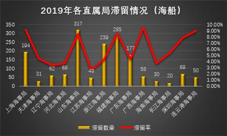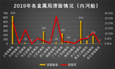 中國海事局2019年開展船旗國監督檢查28226艘次(海船),同比增加187艘次,滯留船舶1649艘次,比去年增加339艘次,滯留率為5.84%,提高了1.17個百分點,共發現缺陷175154條,基本與去年(174604條)持平,單船缺陷數6.21條,與去年(6.23)基本持平;開展內河船旗國監督檢查43840艘次,同比增加9.98%,滯留船舶1686艘次,同比增加1171艘次,滯留率為4.65%,提高了2.43個百分點,共發現缺陷217332條,同比增長1.13%,單船缺陷數為4.69條,比去年減少0.43條。
