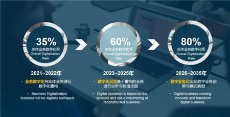 “到2025年,實現數字化運營,總體數字化率提升至60%以上,建成‘數字海工’。到2035年,達成數字業務化,總體數字化率提升至80%以上,建成‘智慧海工’”,于毅展示了海油工程數字化轉型頂層設計的總體藍圖。