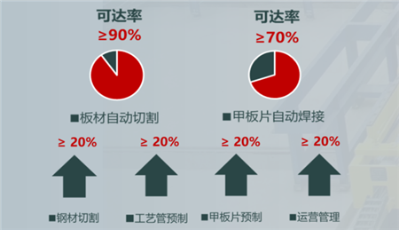 在智能制造方面,海油工程積極推進智能制造基地建設,打造了三大智能中心、七個輔助車間、八處總裝工位,并依托全場信息管控系統實現一體化管理、可視化生產和數字化交付,自動切割率可達到90%以上,甲板片自動焊接率達到70%,鋼材切割、工藝管預制、甲板片預制、運營管理等效率可提升20%以上。