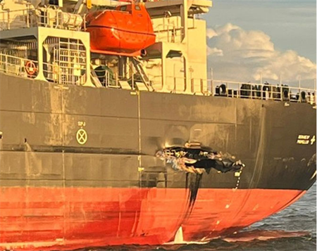 撞得不輕!一艘貨船凌晨撞向錨泊新油輪