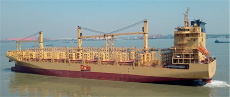 4由中國船舶集團旗下中船澄西船舶修造有限公司建造的全球載重量最大的多用途船62000噸重吊多用途船“泰興”號