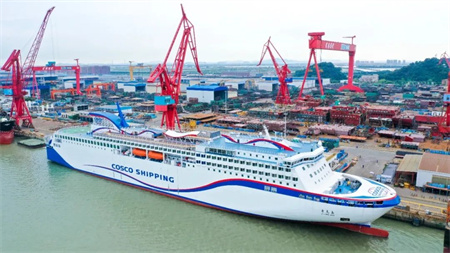 CCS廣州分社執行建造檢驗的中遠海運客運有限公司1375客位/2800米車道系列客滾船首制船“吉龍島”輪。“吉龍島”是一艘全部實現國內自主設計、建造,內裝及重要系統也實現國內配套的豪華客滾船。投入運營后,該船將成為目前智能化程度和舒適度國內領先的大型豪華客滾船。