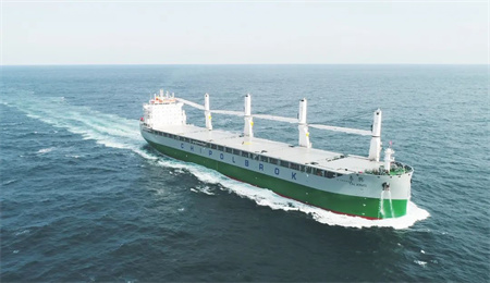 CCS江蘇分社檢驗的21萬噸系列散貨船首制船“惠智海”輪。該系列船是中遠海運散貨運輸有限公司在“一帶一路”倡議引領下,專門為非洲幾內亞鋁土礦航線打造的新船型。