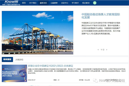 KnowMi(Knowledge Marine International) 是中國船舶工業行業協會主導打造的海事人才國際化教育服務平臺,也于近日正式啟動上線。平臺旨在充分運用現代信息網絡技術,促進構建滿足中國海事工業未來發展要求的職業教育體系和機制,支持開展涉海涉船高等教育、職業教育和全職業生涯再教育。通過教育培訓提升從業者的職業技能、職業競爭力和職業獲得感,助力中國船舶工業的高質量發展。