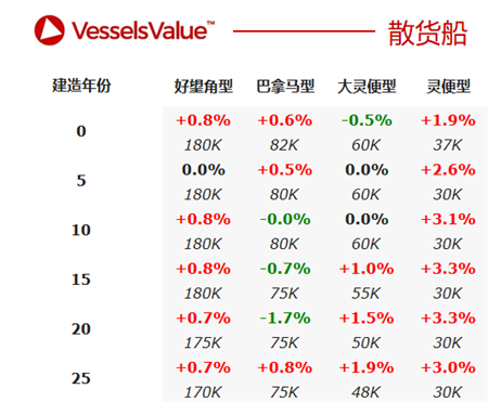 每周全球主流船型二手船交易信息,及VesselsValue(簡(jiǎn)稱VV)售前估值。