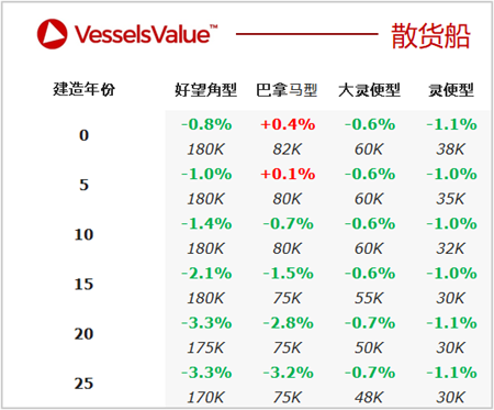 每周全球主流船型二手船交易信息,及VesselsValue(簡稱VV)售前估值。