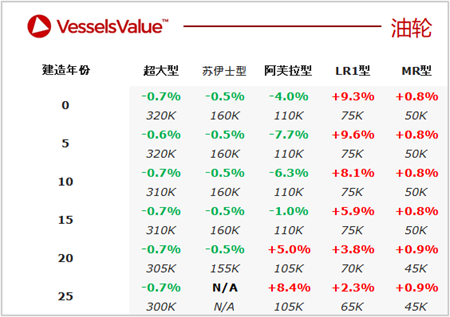 12.06-12.12:本周油輪價值堅挺,特別是船齡較大的阿芙拉型油輪