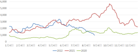 2020-2022年BDI走勢對比圖