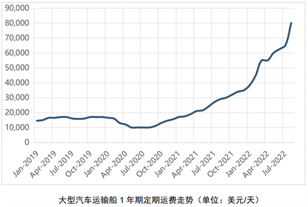 汽車海運(yùn)市場(chǎng)屢創(chuàng)新高。8月,汽車運(yùn)輸船運(yùn)費(fèi)再次創(chuàng)紀(jì)錄,6500車汽車運(yùn)輸船運(yùn)費(fèi)達(dá)到8萬美元/天,也保持了自2020年6月以來連續(xù)26個(gè)月正增長(zhǎng)。汽車船總運(yùn)力近十年變化較小,新船交付量處于低位,汽車船供給偏緊,有利支撐市場(chǎng)運(yùn)費(fèi)價(jià)格。