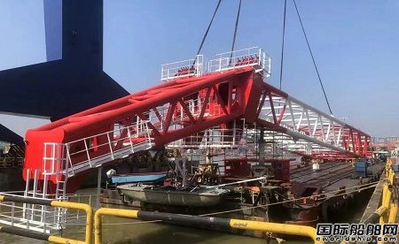廣東中遠(yuǎn)海運(yùn)重工交付風(fēng)電場風(fēng)機(jī)維護(hù)船700噸重吊吊臂鋼結(jié)構(gòu)建造項目