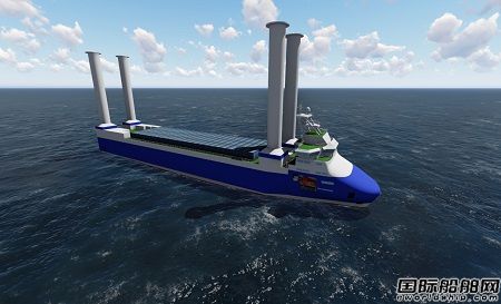 由武昌造船新能源船舶研發(fā)團(tuán)隊(duì)設(shè)計(jì)的風(fēng)帆輔助貨滾船,是一型低碳環(huán)保型船舶,采用甲醇/柴油雙燃料主推進(jìn)系統(tǒng)和旋轉(zhuǎn)風(fēng)筒輔助動(dòng)力推進(jìn)系統(tǒng),配備雙向可逆軸帶發(fā)電機(jī)、艏側(cè)推以及穩(wěn)定翼,設(shè)計(jì)航速14節(jié),最大航速達(dá)到17節(jié)。該船滿足EEDI三階段要求,搭配節(jié)能優(yōu)化管理系統(tǒng)、能效管理監(jiān)控系統(tǒng)、氣體排放監(jiān)控系統(tǒng),使船舶能夠在各種氣候條件下最大限度節(jié)省燃油消耗,年度碳排放減少量可達(dá)到7000噸,滿足國(guó)際海事組織(IMO)對(duì)運(yùn)營(yíng)船舶節(jié)能減排愈加嚴(yán)格的要求,符合綠色節(jié)能高效的船舶發(fā)展趨勢(shì)。