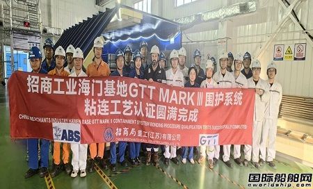 10月26日,在船東、GTT及ABS船級社的共同見證下,海門基地GTT Mark III圍護系統粘連工藝認證圓滿成功。粘連工藝認證需要對LNGC項目貨艙圍護系統粘連基礎設備和工藝流程等進行全面系統地評估,并開展包括膠機功能測試、熱壓板系統測試在內的多方面試驗測試。