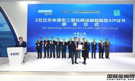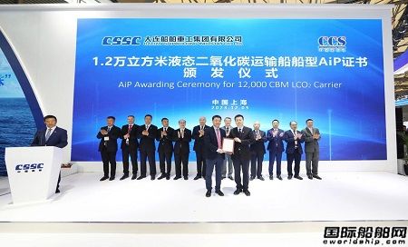 發(fā)布儀式現(xiàn)場(chǎng),中國(guó)船級(jí)社(CCS)、挪威船級(jí)社(DNV)及英國(guó)勞氏船級(jí)社(LR)分別向大連造船頒發(fā)相應(yīng)船型的AiP原則性認(rèn)可證書(shū)。