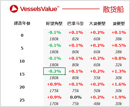 09.12-09.18:本周散貨船收益堅挺,船舶價值保持穩定。