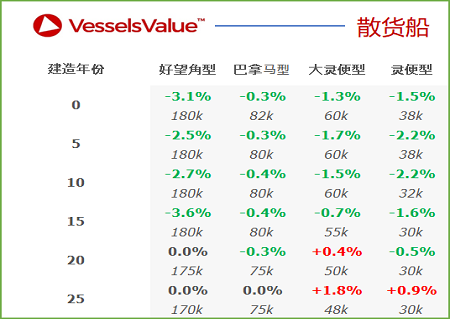 10.17-10.23:好望角型散貨船價值全面堅挺,其他散貨船價值則保持穩定。