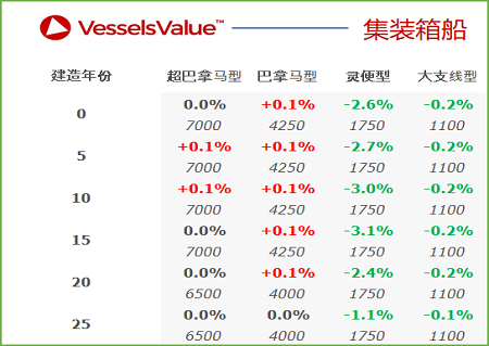 10.17-10.23:二手集裝箱船價值持續逐步下滑的態勢,中等船齡及較老舊的超巴拿馬型集裝箱船的資產價值下跌2-3%。