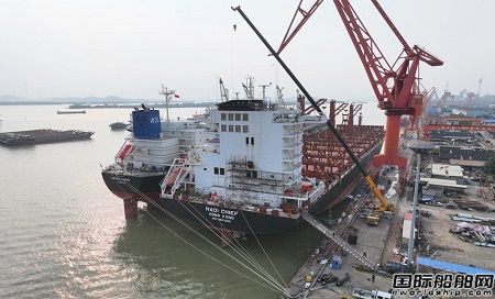 廣東中遠(yuǎn)海運(yùn)重工完成VLGC雙燃料改裝船甲板罐吊裝工作