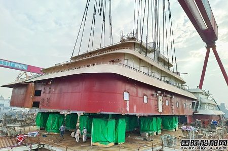 12月11日,“閩投惠安一號”主船體從文沖修造碼頭移船至廣船國際2#塢口東,進行上建總段吊裝。12月12日順利完成前島吊裝,12月14日順利完成后島吊裝。