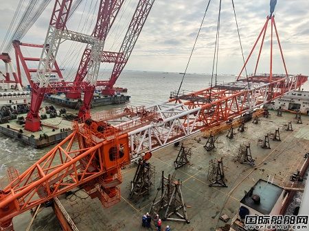 文沖修造組織對吊車吊臂拆除工藝技術方案反復論證,安排經驗豐富、實力過硬的施工團隊進行攻關。施工過程中,克服風浪大、強冷空氣影響,從12月19日晚上600T和1600T浮吊到位開始聯吊、舊銷子拆除,到12月20日早上9點舊吊臂吊放運輸船,高效完成舊吊臂拆除任務,比計劃提前一天完成關鍵節點,同比“華祥龍”輪吊臂拆除工程,該吊臂重量加重,但作業時間縮短20多個小時,刷新了吊臂拆除記錄。
