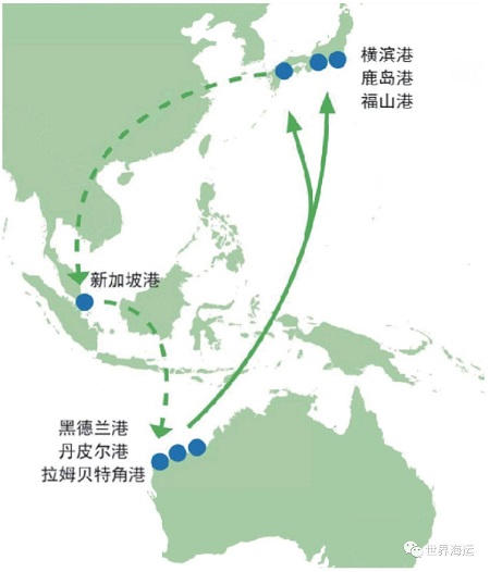圖3 澳大利亞—東亞鐵礦石綠色航運走廊