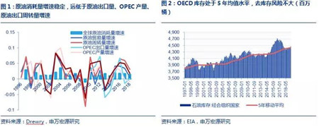 原油消耗量具有韌性,波動主要由庫存周期引發(fā)。2010年后,原油消耗增速非常穩(wěn)定,在1.2%-2%之間波動。原油海運(yùn)量、需求量、以及OPEC產(chǎn)量的增速遠(yuǎn)高于原油消耗增速,背后原因在于運(yùn)距以及庫存波動。OECD庫存在5年歷史均值附近,去庫存風(fēng)險較低,原油海運(yùn)需求具有韌性。