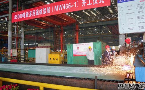 1月18日,福建船政旗下企業馬尾造船建造的85000噸級多用途紙漿船(MW466-1)順利開工。中信金租、中遠海特、北京中遠海運船貿、中國船級社福州分社和福建船政等相關領導和員工代表等出席儀式。
